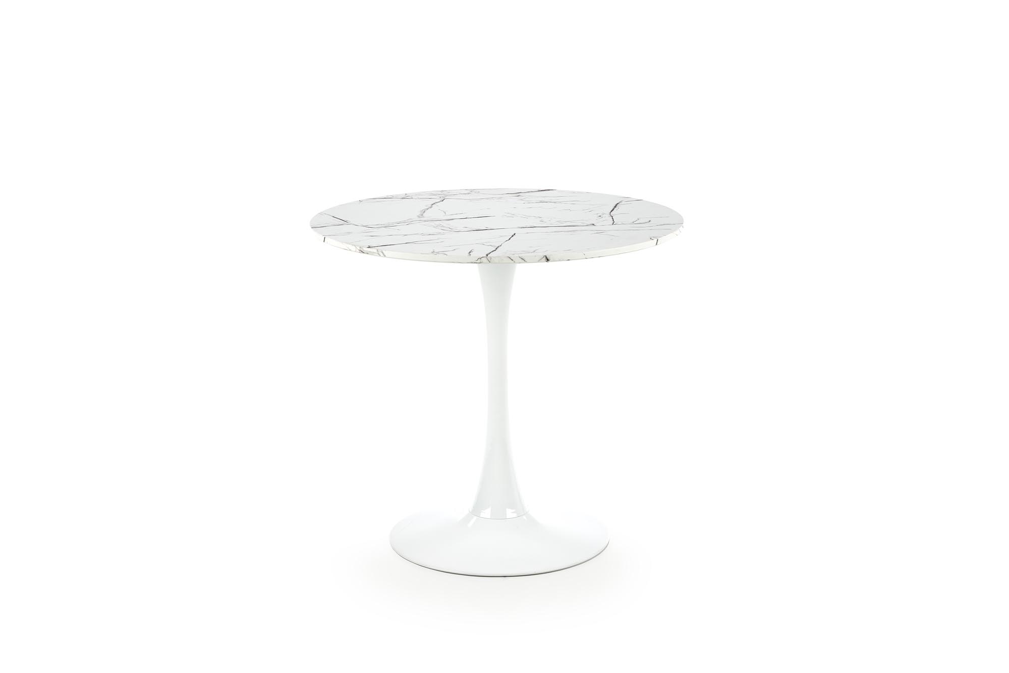 rozmery: fi 80/73 cm, materiál: dýhovaná MDF / oceľ farbená práškovaním, farba: doska - biely mramor, noha - biela