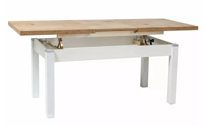 Konferenčný/jedálenský stôl KLEOPATRA, dub lancelot / POLOMATNÁ BIELA 124(164)x64x59(71)